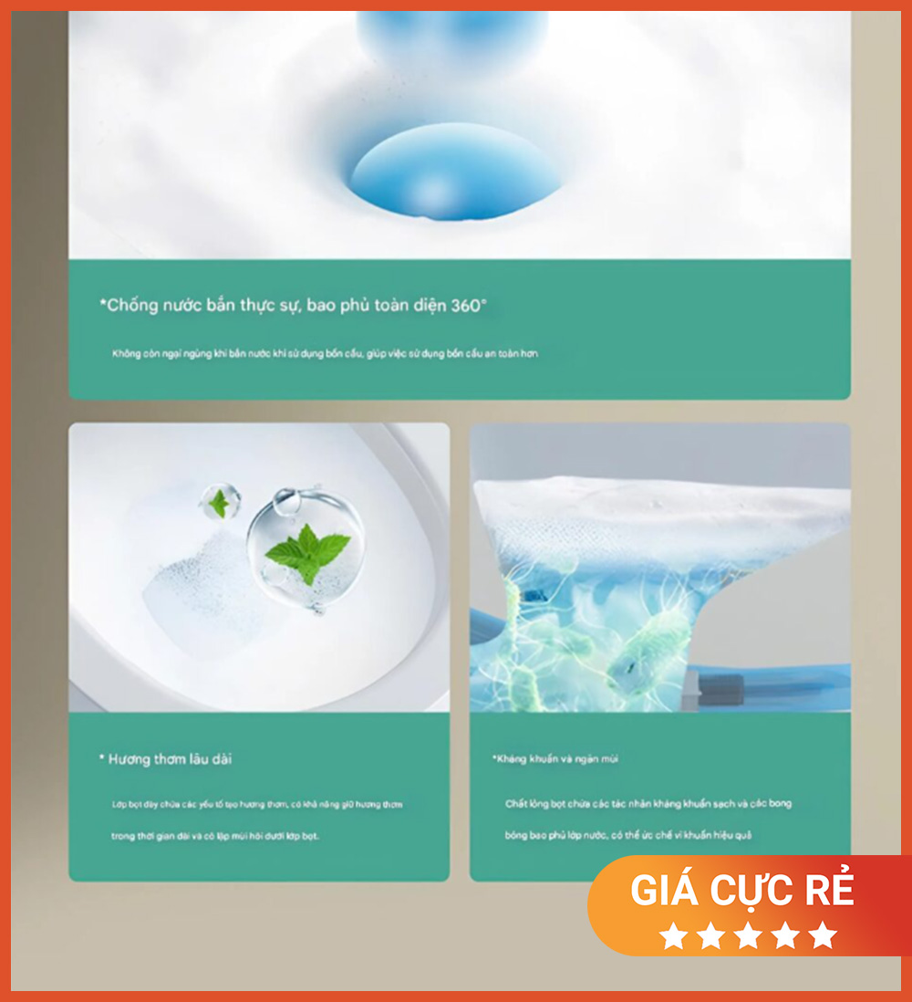 - Tạo bọt chắn bề mặt nước – giảm mùi & ngăn bắn nước