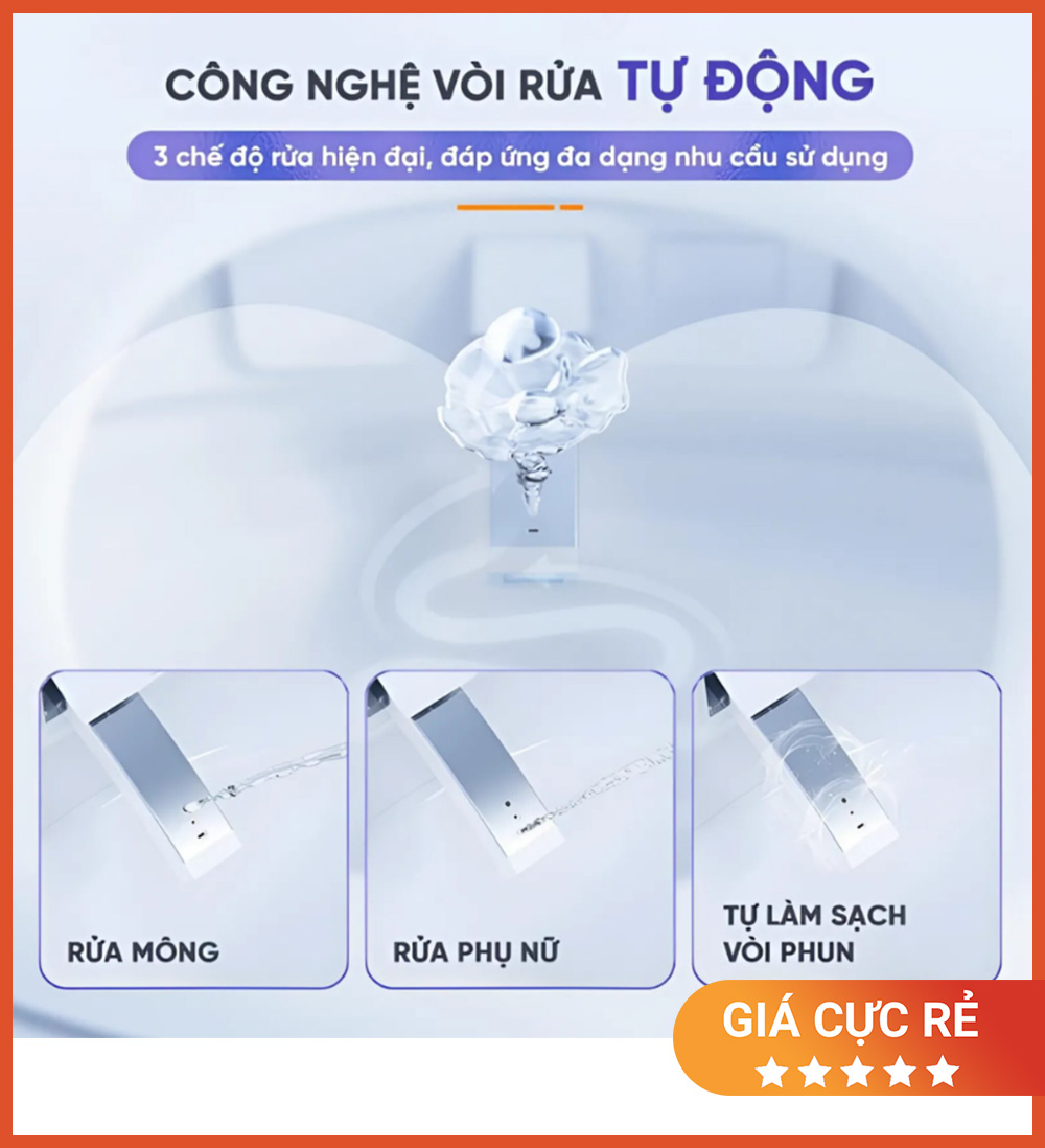 | Nhiệt độ nước & nắp ngồi | 4 mức: Trung bình – 40°C – 45°C – 50°C |