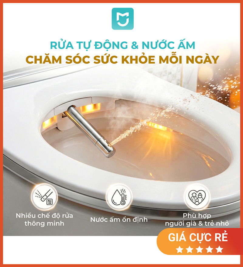 Nước rửa được hâm nóng tức thời, duy trì ở mức nhiệt ổn định (ví dụ khoảng 34‑40 °C) → thông tin tương đồng với mẫu thông số của các phiên bản bidet/seat thông minh Xiaomi.