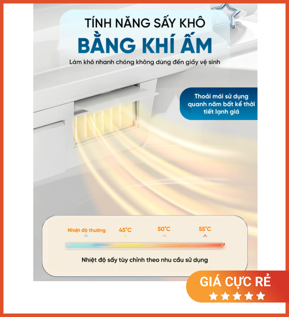 Nhờ vậy, người dùng cảm giác sạch và khô ráo ngay sau khi sử dụng – không chỉ “rửa” mà còn “làm khô & thông thoáng”.