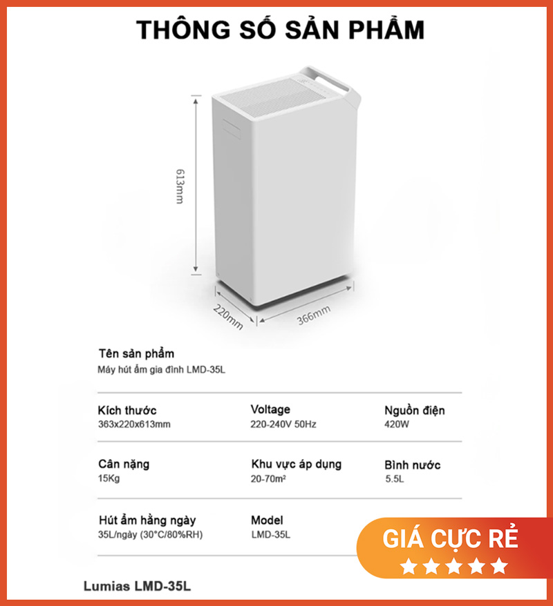 | Tên sản phẩm | Máy hút ẩm gia đình Lumias LMD-35L |