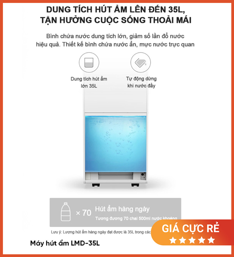 Công suất hút ẩm 35L/ngày hạn chế phải đổ nước thường xuyên