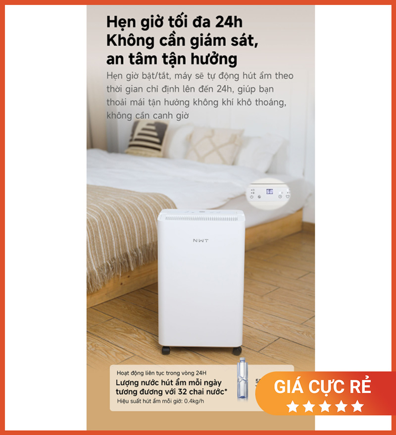 New Widetech 16L hẹn giờ bật/tắt 24h – Chủ động kiểm soát độ ẩm