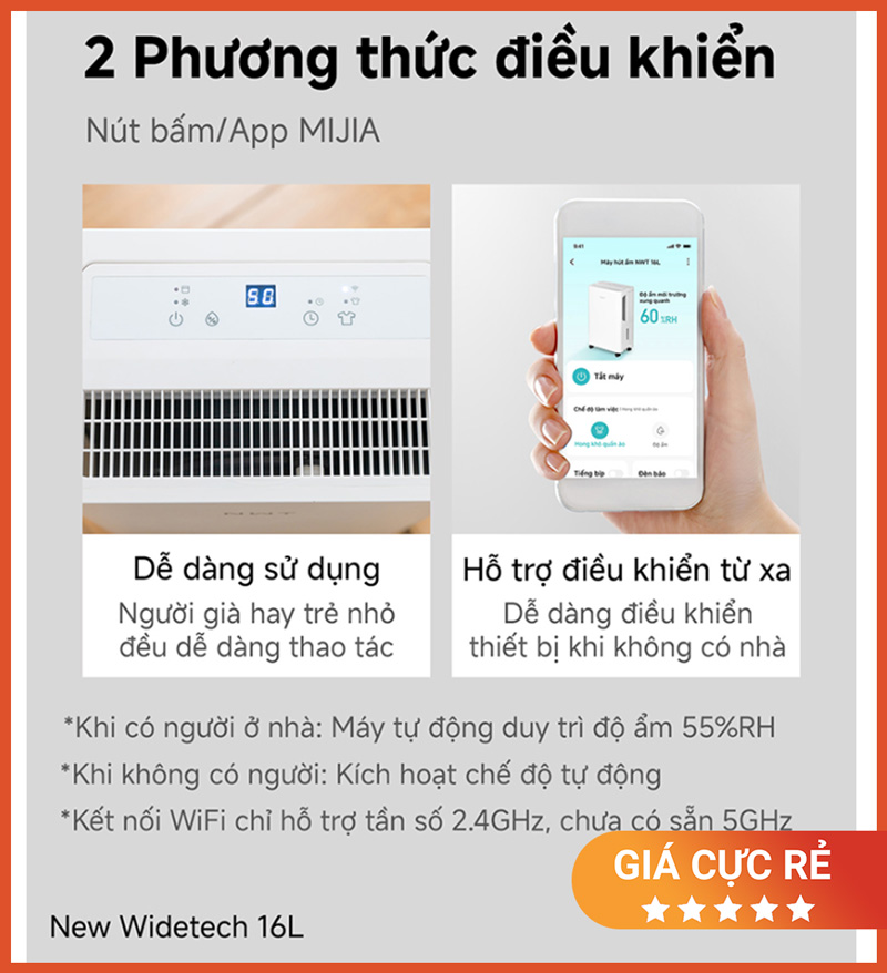 Nếu bạn đang tìm một máy hút ẩm cho căn hộ/gia đình, ưu tiên hút mạnh 16L/ngày cho diện tích ≤ 35m², có hẹn giờ 24h, luồng khí 3D hỗ trợ hong khô quần áo, cảm biến nhạy, điều khiển Xiaomi Home, và đặc biệt siêu êm chỉ 34.5dB, thì NEW WIDETECH 16L (WDH33B16EW) là lựa chọn rất đáng cân nhắc cho mùa nồm – mùa mưa ở Việt Nam.