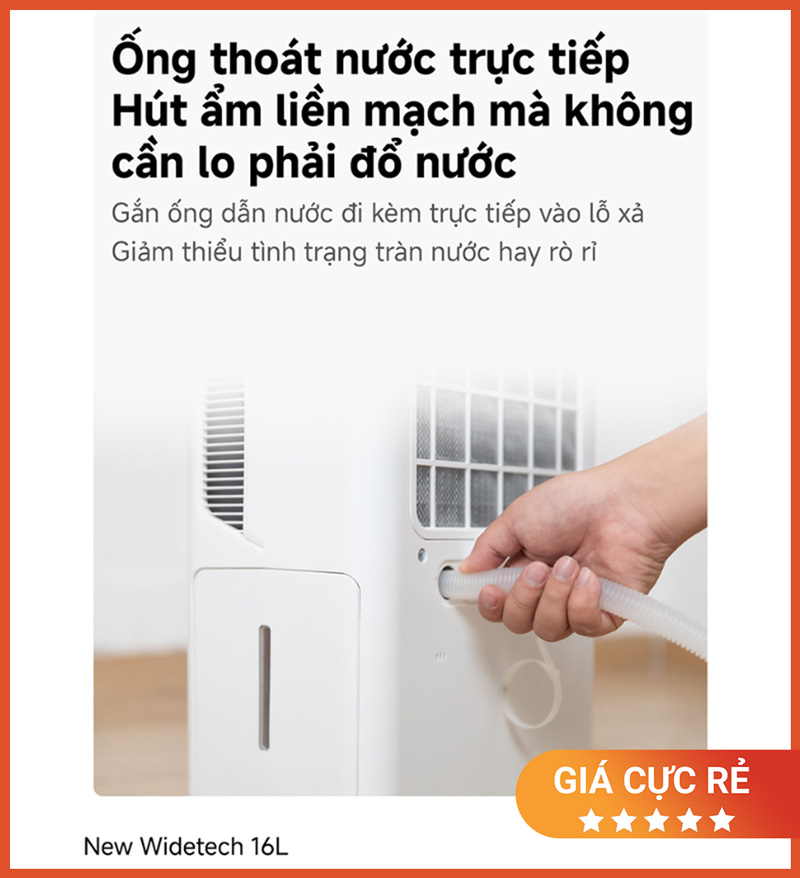 Máy hút ẩm New Widetech WDH33B16EW hút ẩm liên tục với hệ thống xả nước kép