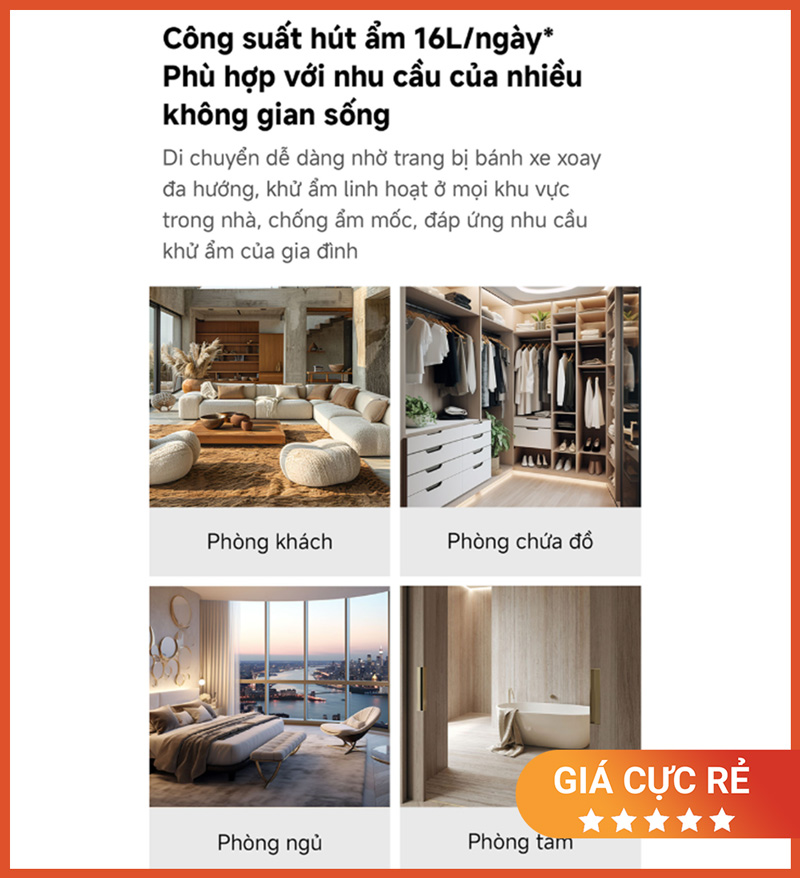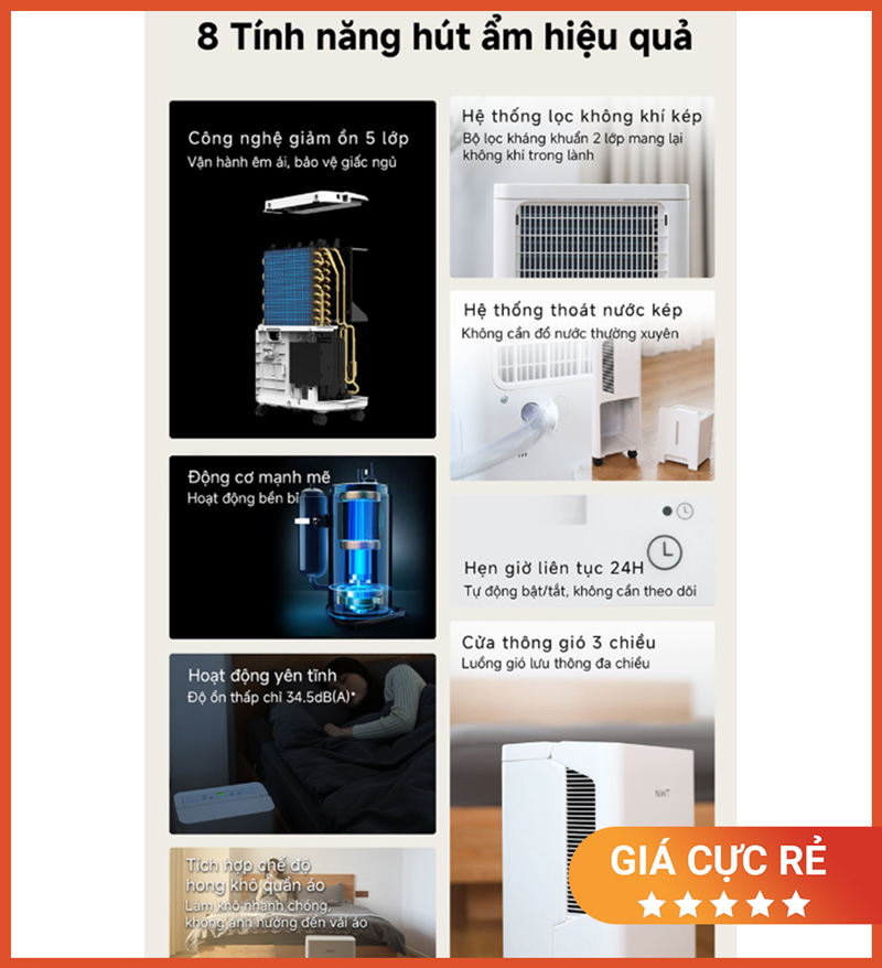 Tối ưu cho nhà Việt: xử lý nồm ẩm, giảm mốc tường, giảm mùi ẩm bám đồ vải.