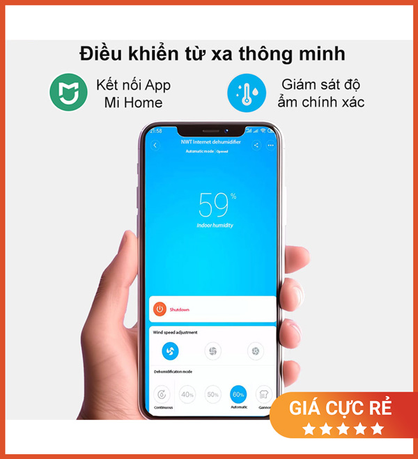 Tùy chỉnh tốc độ gió: 3 cấp độ quạt gió để cân bằng giữa hiệu quả hút ẩm và độ ồn.