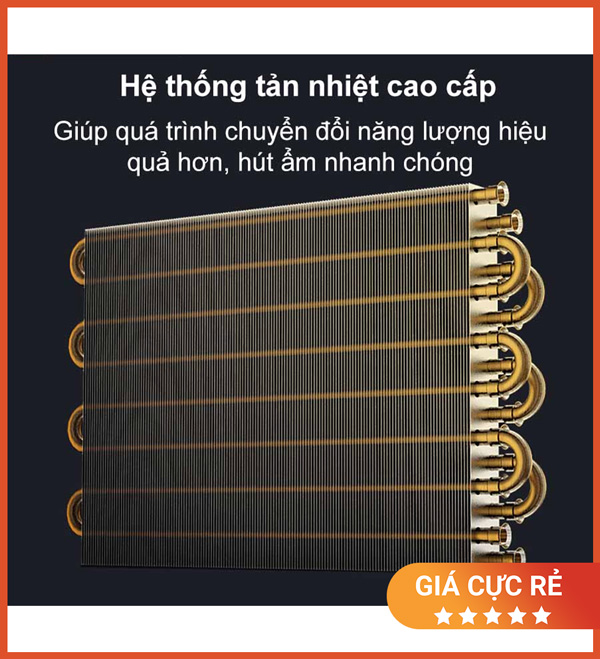 Trao đổi nhiệt hiệu quả: Tăng tốc độ ngưng tụ nước từ không khí, giúp hút ẩm nhanh hơn.