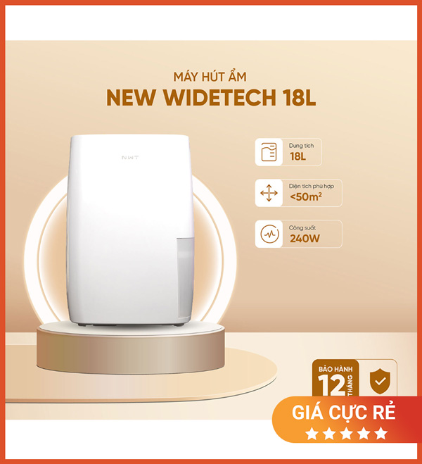 Máy hút ẩm thông minh NEW WIDETECH 18L là lựa chọn tuyệt vời nếu bạn đang tìm một thiết bị có khả năng hút ẩm nhanh, tiết kiệm điện, dễ điều khiển từ xa và bền bỉ theo thời gian.