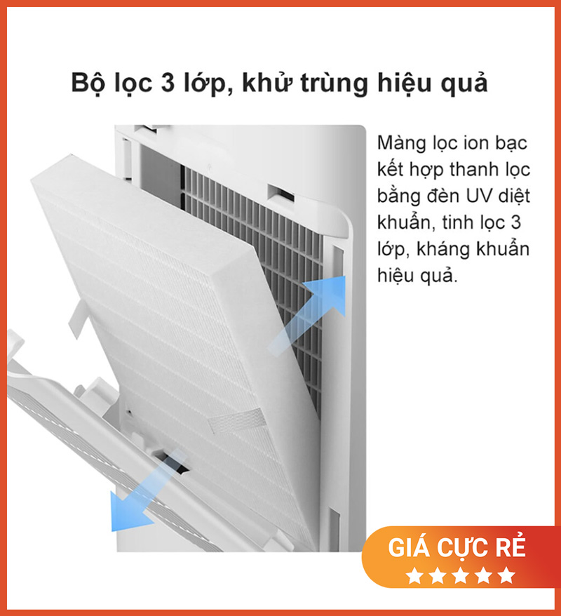 Khử khuẩn hiệu quả với bộ lọc 3 lớp