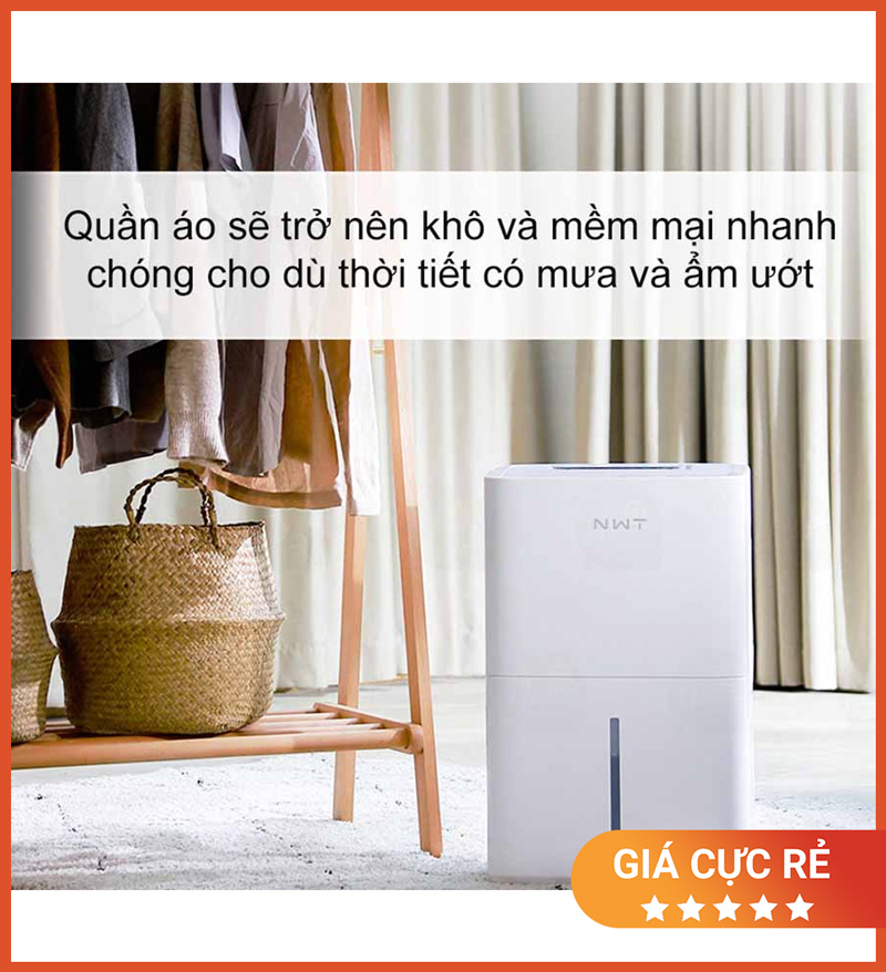 Máy hút ẩm không khí New Widetech 30L giúp quần áo nhanh khô hơn