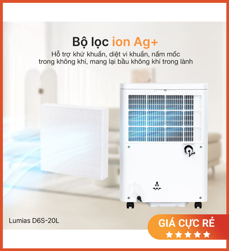 Lumias D6S-20L tích hợp bộ lọc ion bạc giúp nâng cấp trải nghiệm từ “hút ẩm” sang khô thoáng + sạch hơn: