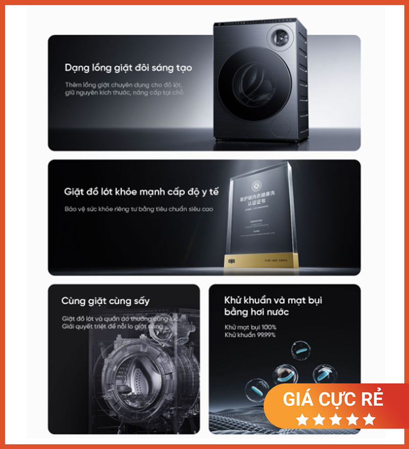Hệ thống giặt sấy đôi, treo đôi sáng tạo, vận hành êm ái