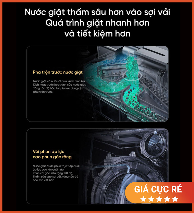 Công nghệ giặt nhanh tinh chất kép giúp: