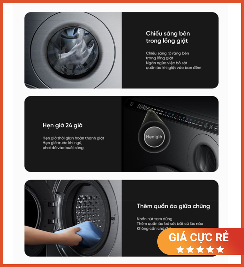 Nhờ khả năng điều khiển thông minh, người dùng có thể chủ động hoàn toàn trong việc giặt sấy, tiết kiệm thời gian và nâng cao trải nghiệm sử dụng hàng ngày.