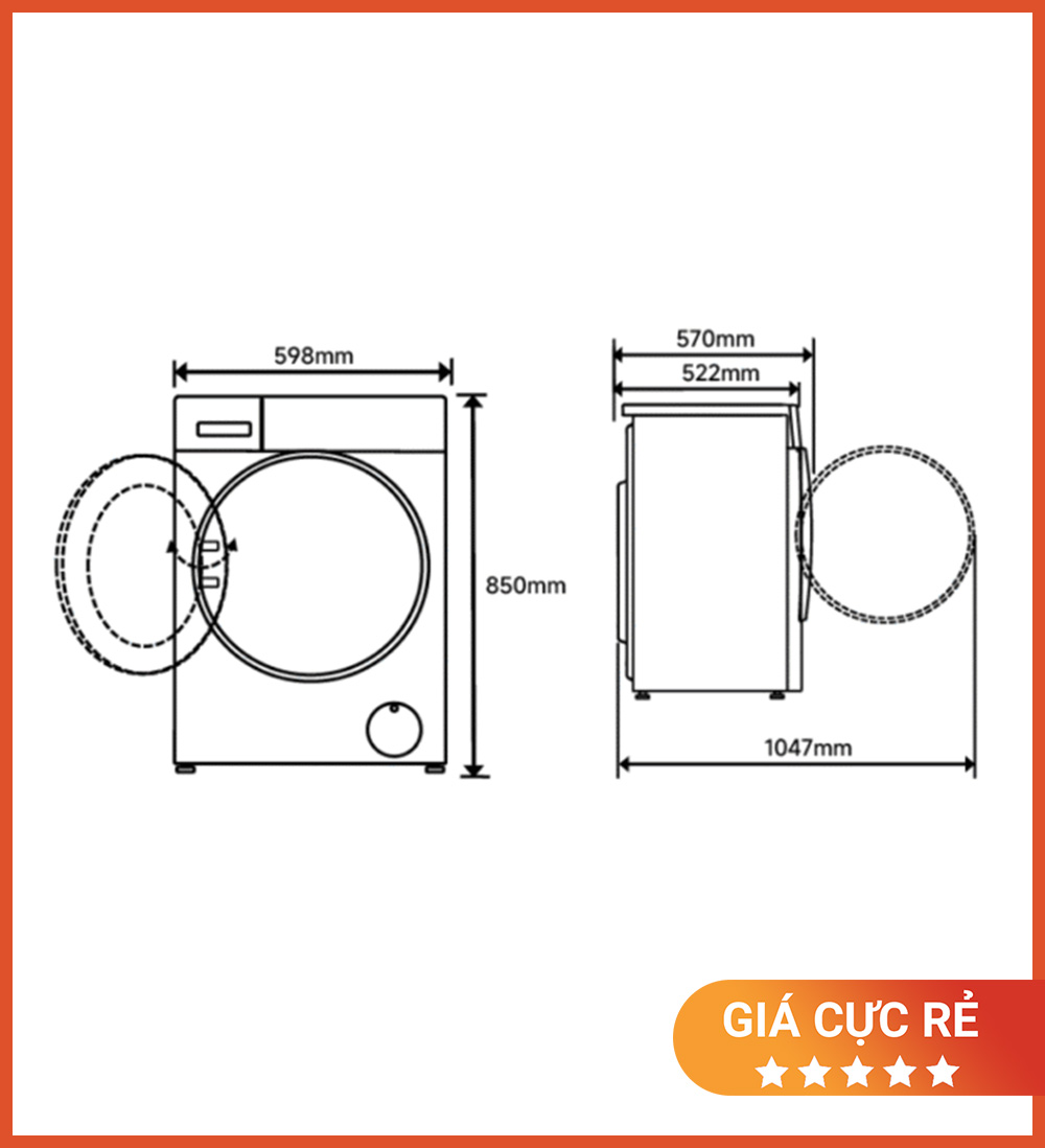 | Kích thước sản phẩm (RxSxC) | 570 x 598 x 850 mm |
