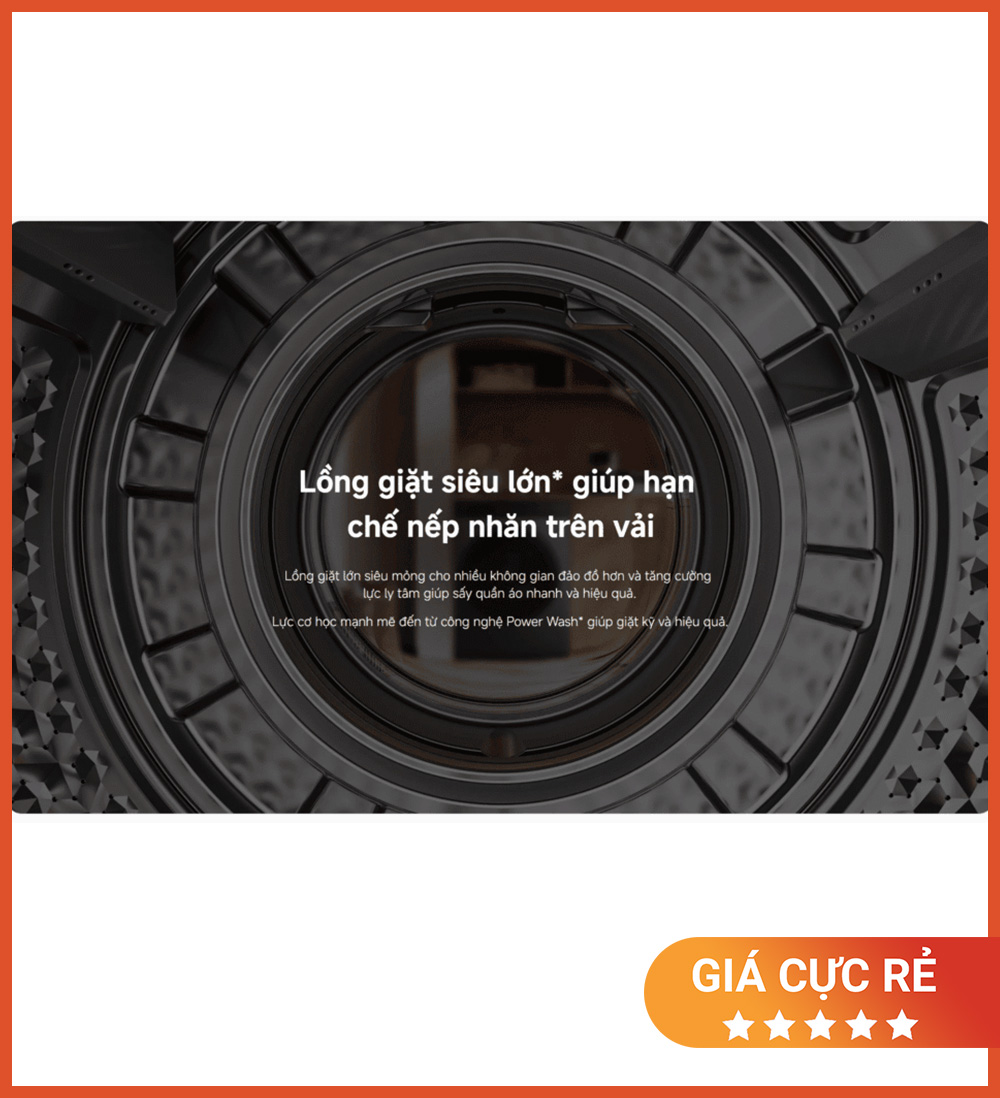 Thiết kế lồng lớn đặc biệt hiệu quả khi giặt đồ dày, đồ cotton, đồ cao cấp, giúp quần áo luôn bền đẹp sau thời gian dài sử dụng.