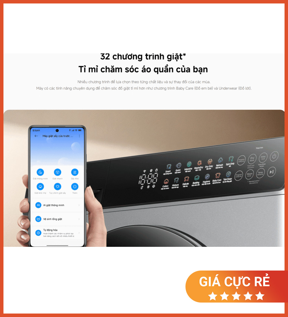 | Tiện ích nổi bật | Giặt thông minh bằng AI, giặt hơi nước, vệ sinh lồng giặt, gioăng cửa chống khuẩn |