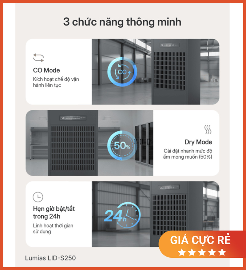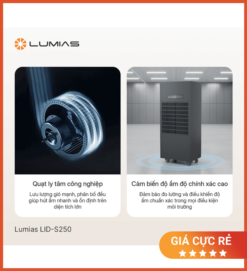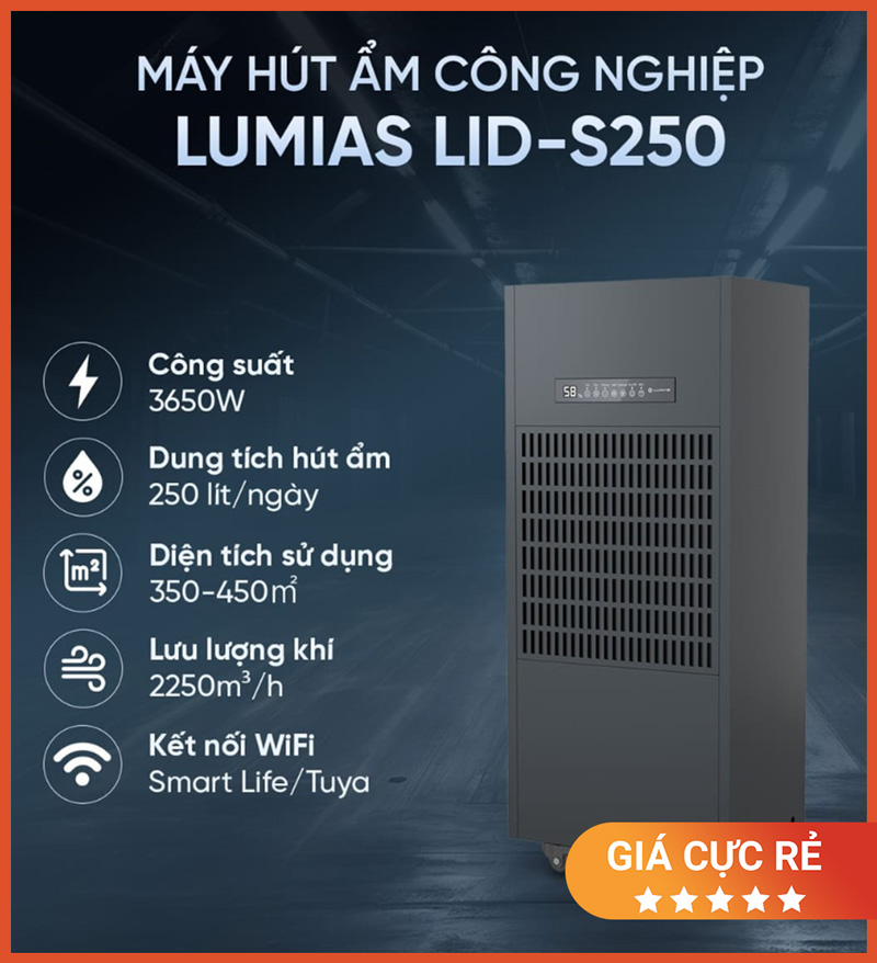 Lumias LID-S250 phù hợp cho nhu cầu hút ẩm công nghiệp công suất lớn nhờ: