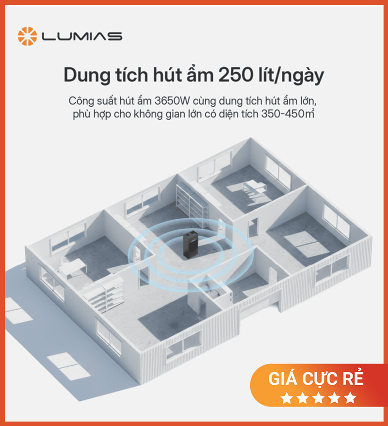 Hiệu suất hút ẩm 250L/ngày – phù hợp 350–450m²