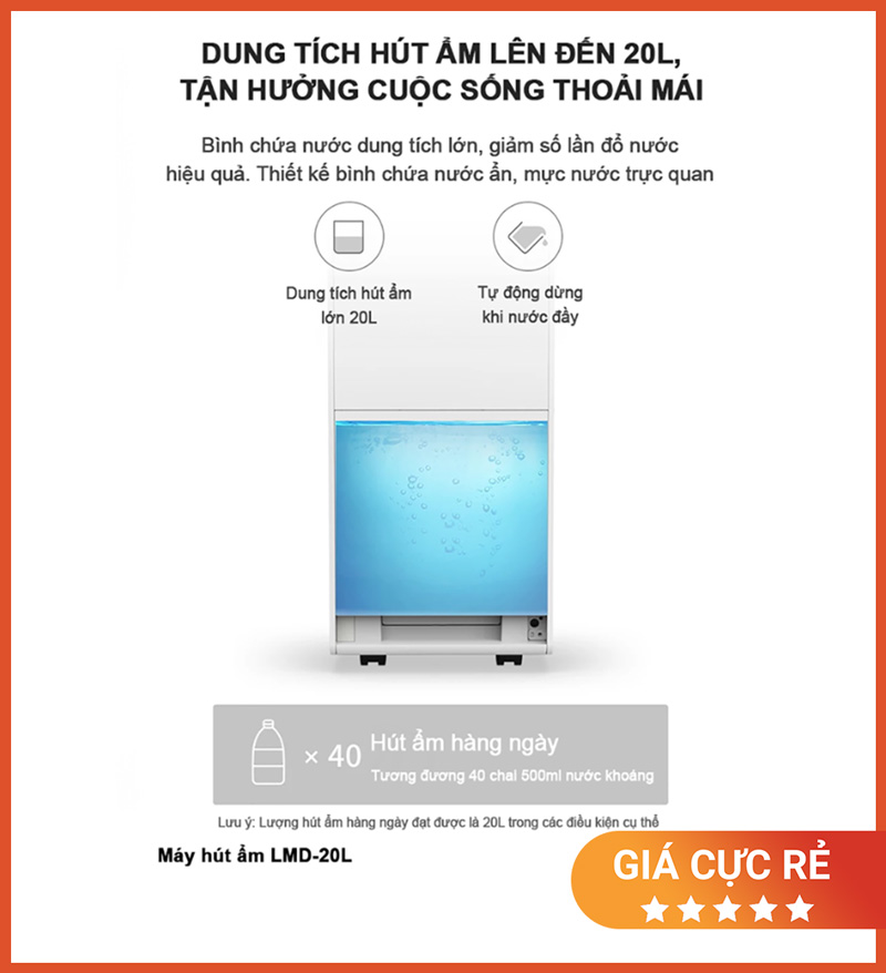 Một trong những bất tiện lớn nhất khi dùng máy hút ẩm là phải đổ nước liên tục, nhất là vào ngày nồm khi nước đầy rất nhanh. Lumias LMD-20L được thiết kế với bình chứa dung tích lớn, giúp: