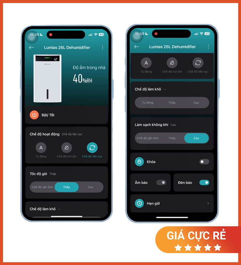 Điều chỉnh linh hoạt theo lịch sinh hoạt: ban ngày ưu tiên hút ẩm, tối ưu môi trường cho làm việc; ban đêm giữ mức vận hành phù hợp cho giấc ngủ.
