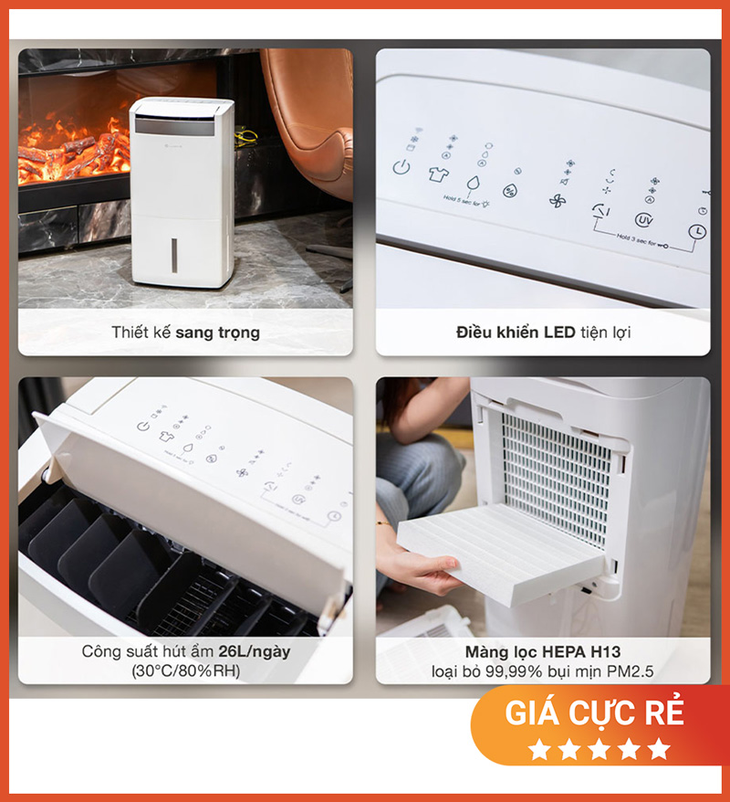 Trong điều kiện thời tiết nồm ẩm, mưa nhiều hoặc không gian kín bật điều hòa thường xuyên, độ ẩm tăng cao sẽ kéo theo hàng loạt “phiền toái”: sàn nhà ẩm trơn, quần áo lâu khô, mùi ẩm mốc trong tủ đồ và cảm giác bí bách khó chịu. Chưa kể, môi trường ẩm còn tạo điều kiện cho nấm mốc phát triển, ảnh hưởng đến nội thất và sức khỏe hô hấp của cả gia đình.