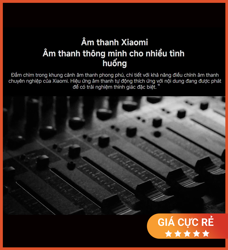 Một điểm cộng đáng chú ý khác là công nghệ Xiaomi Sound, cho phép TV tự động tối ưu âm thanh theo từng loại nội dung đang phát. Đây là tính năng rất thực tế vì không phải mọi nội dung đều cần cùng một kiểu âm thanh.