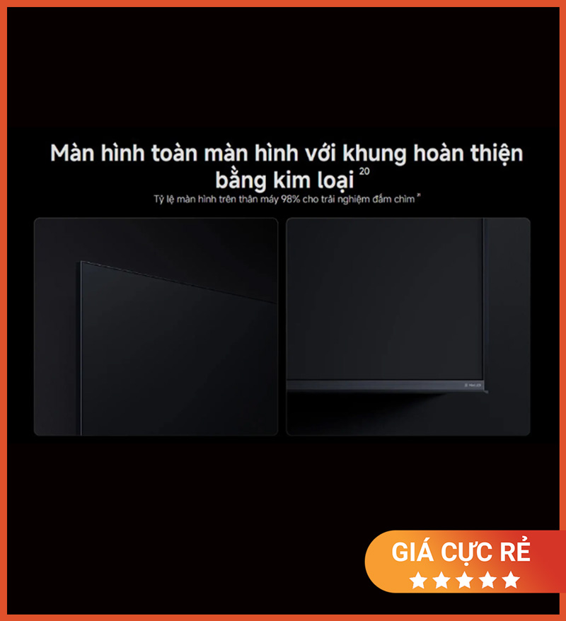 Thiết kế sang trọng với viền kim loại và tỷ lệ màn hình lên đến 98%