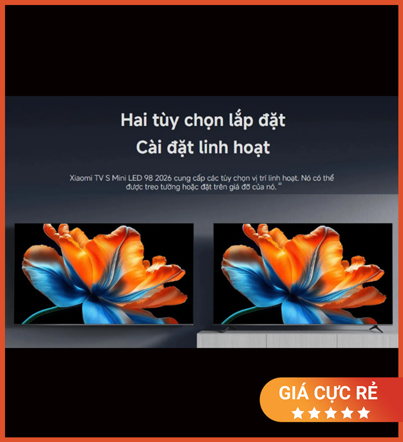 Xiaomi Smart Display S Mini LED 98 inch 2026 - 4K/144Hz là mẫu TV màn hình siêu lớn hướng đến người dùng đang tìm kiếm trải nghiệm giải trí cao cấp ngay tại nhà. Với kích thước 98 inch, độ phân giải 4K, tần số quét 144Hz cùng hàng loạt công nghệ hiển thị và âm thanh hiện đại, sản phẩm mang đến không gian xem mãn nhãn, phù hợp cho phòng khách lớn, phòng giải trí hoặc khu vực trình chiếu cao cấp.