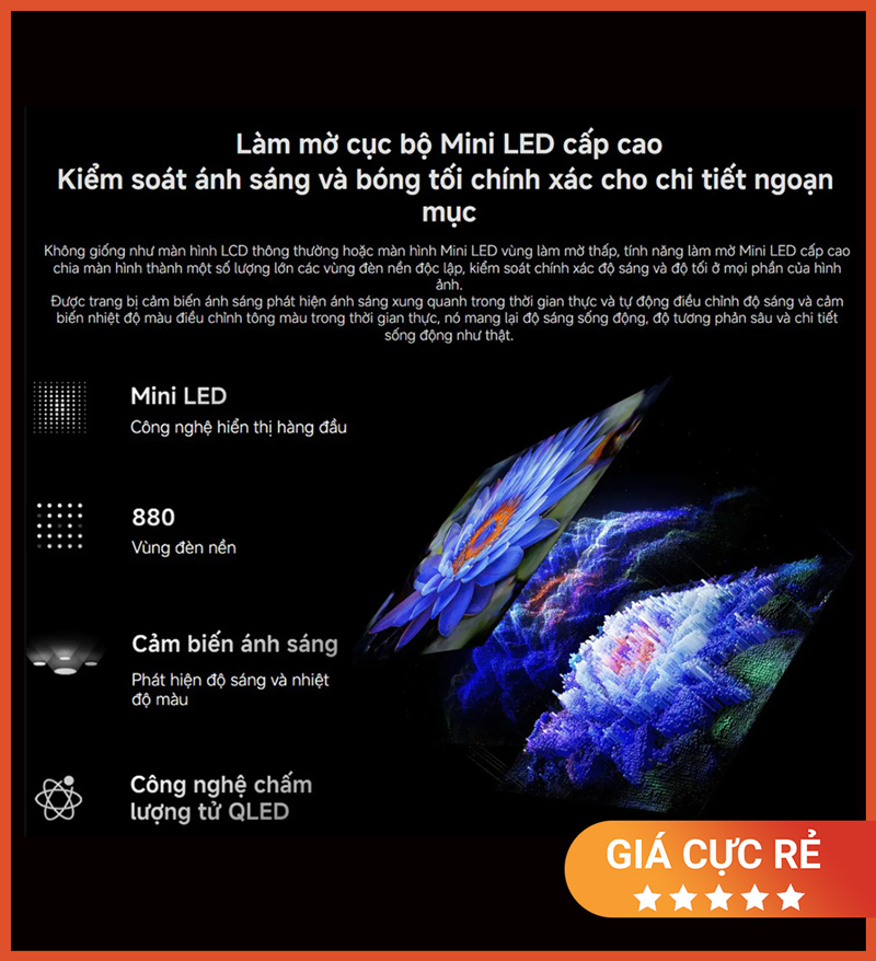 Công nghệ Mini LED với 880 vùng dimming kiểm soát ánh sáng độc lập