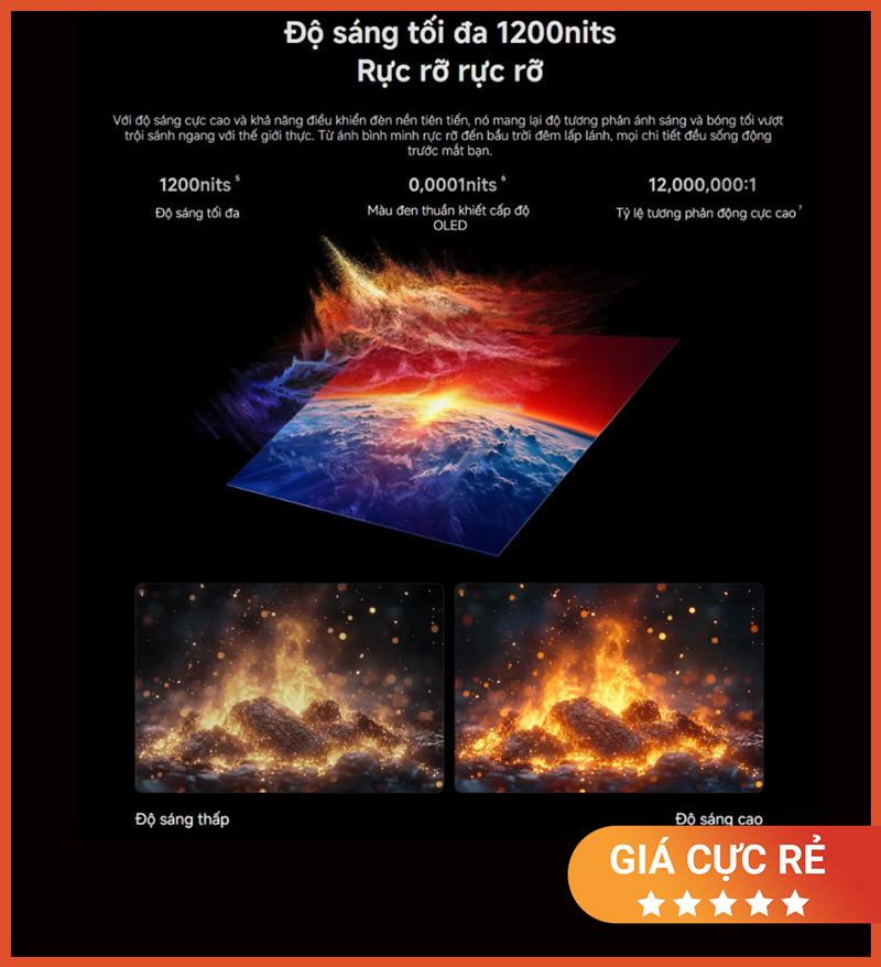 Độ sáng tối đa 1200 nits mang lại độ rõ nét ấn tượng