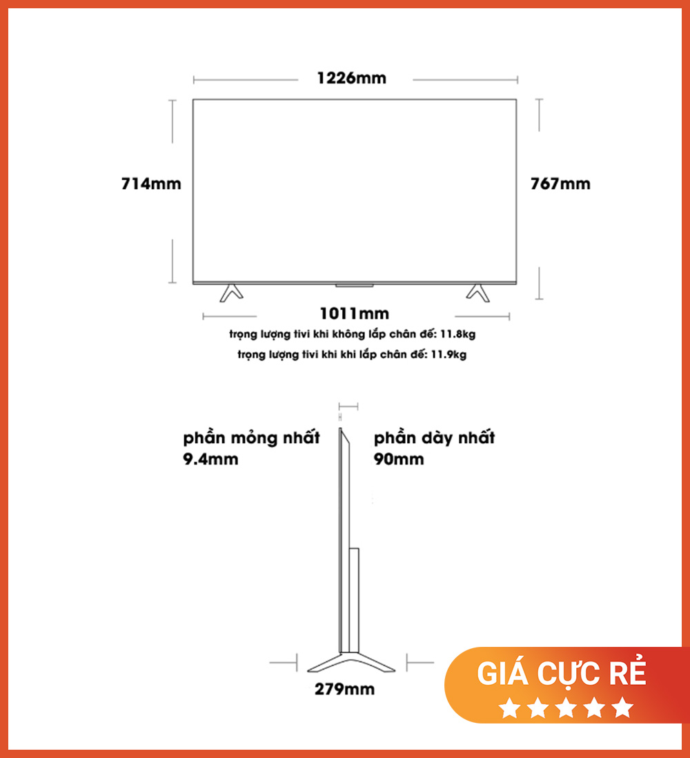 Redmi X55 2025 sở hữu thiết kế kim loại nguyên khối cao cấp, mang lại vẻ ngoài chắc chắn, sang trọng và đầy tinh tế. Viền siêu mỏng được vát gọn ở cả bốn cạnh giúp mở rộng diện tích hiển thị, tạo cảm giác hình ảnh như tràn ra khỏi khung viền, đồng thời tăng tính thẩm mỹ cho không gian lắp đặt.