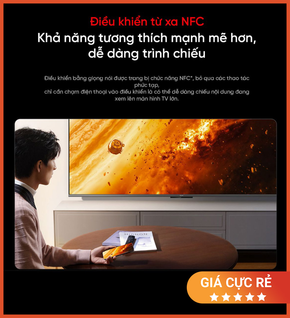 Remote hỗ trợ NFC: chỉ cần chạm nhẹ điện thoại (Android/Xiaomi) vào remote để kết nối – chia sẻ nội dung lên tivi ngay lập tức