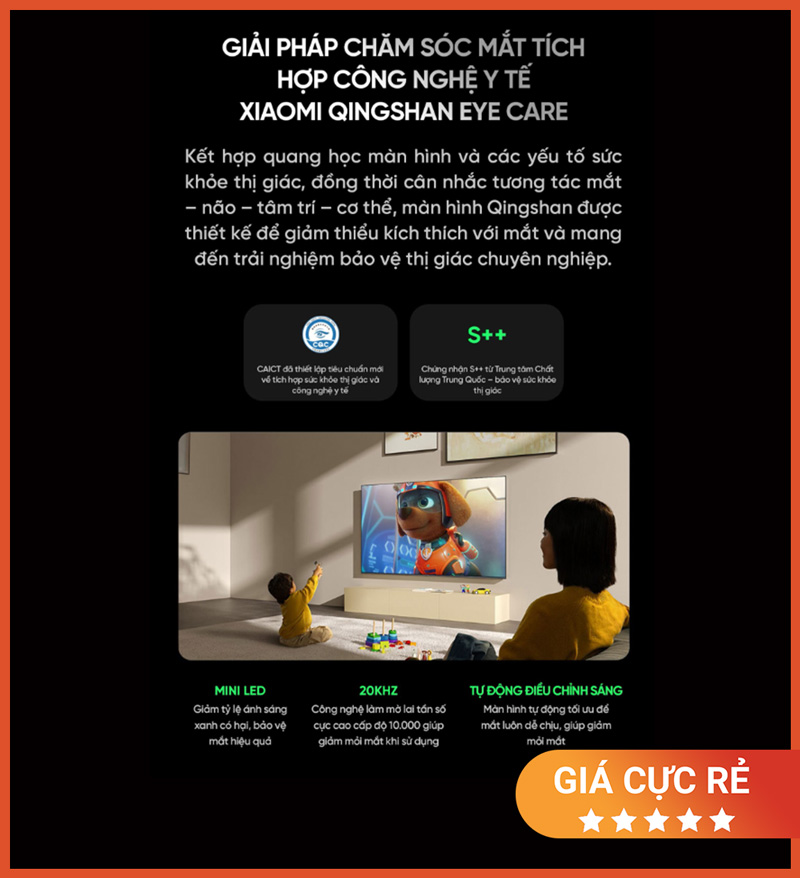 Qingshan Eye Care là bộ tính năng tối ưu trải nghiệm xem lâu, đặc biệt hữu ích khi xem buổi tối hoặc gia đình có trẻ nhỏ/người lớn tuổi: