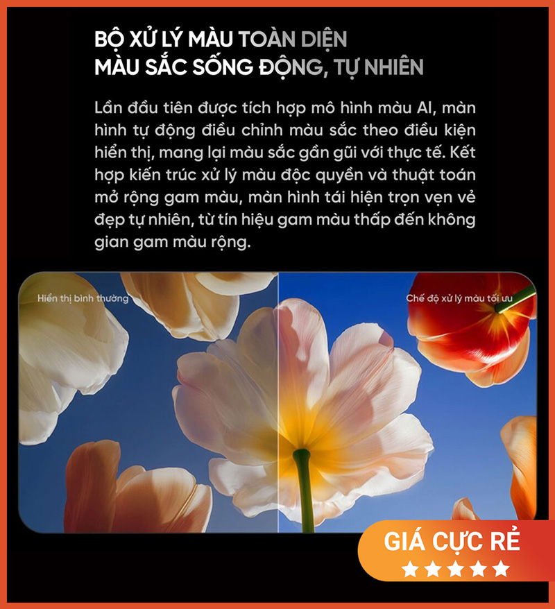 Hệ xử lý màu giúp màu sắc hiển thị đúng tông và ổn định, tránh kiểu “lúc ám xanh, lúc ám vàng”: