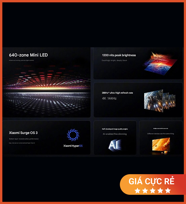 Công nghệ Mini LED trên Redmi X85 sử dụng hơn 640 vùng làm mờ độc lập giúp tăng độ tương phản động lên mức tối đa, cải thiện chiều sâu hình ảnh đáng kể: