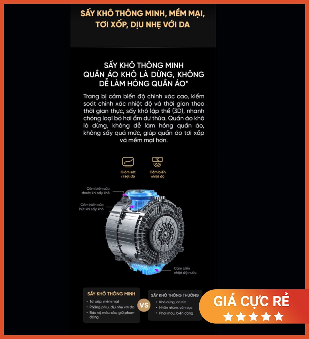 Công nghệ sấy khô thông minh – Không nhăn, không ám mùi