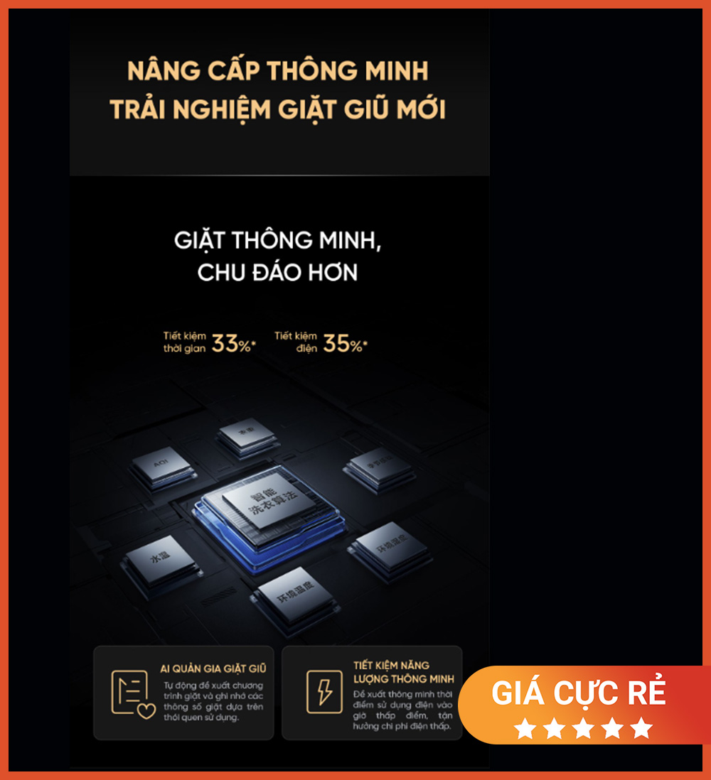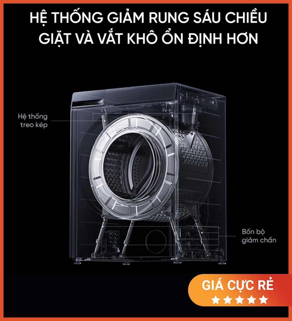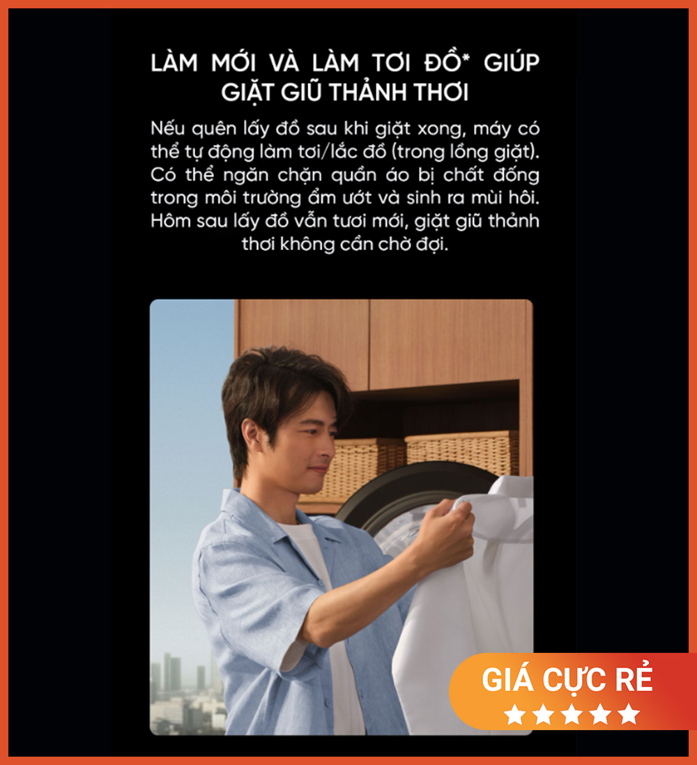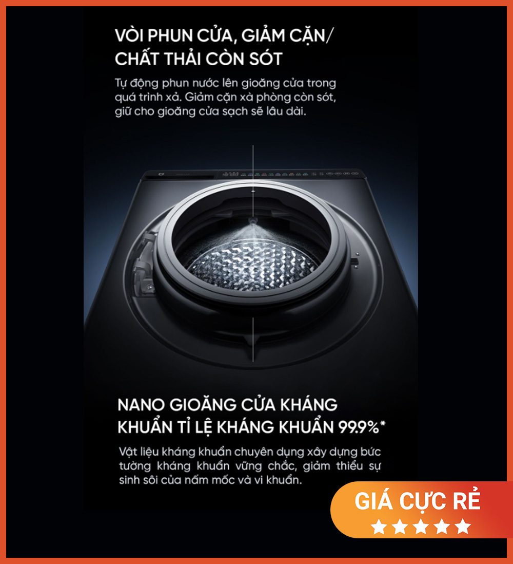 - Giặt hơi nước 95°C – sấy AI – tự làm sạch lồng giặt
