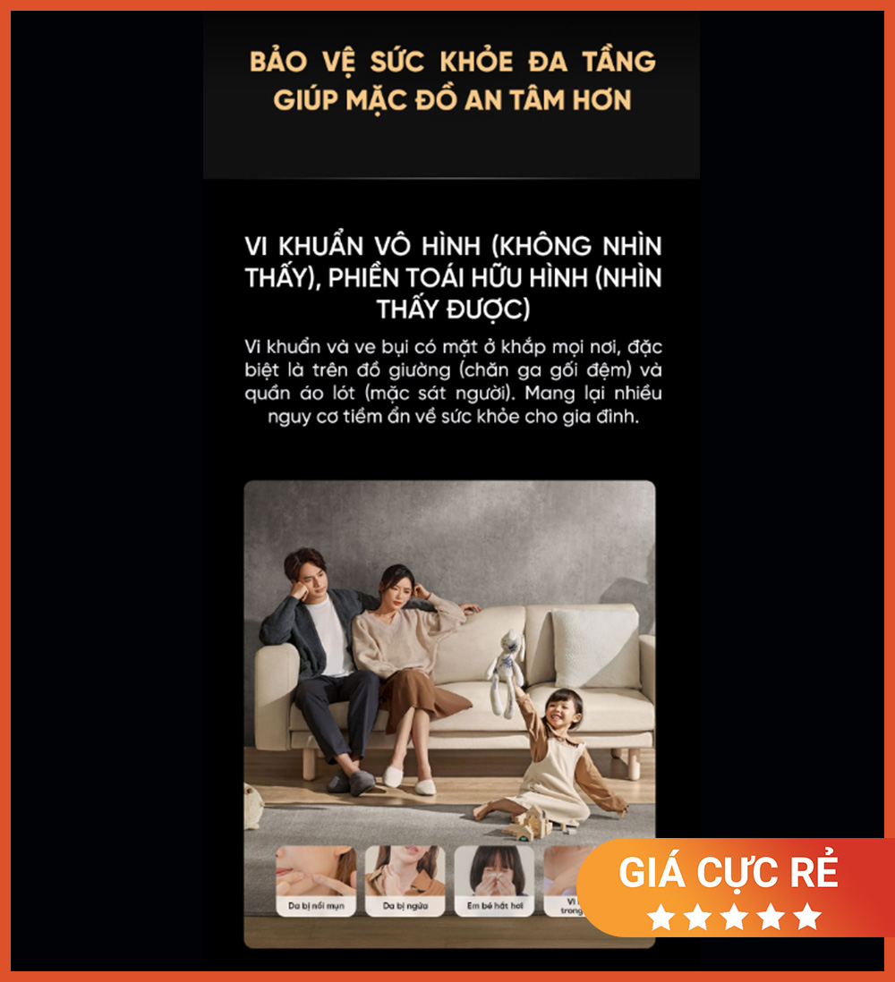 Đây là tính năng đặc biệt quan trọng với gia đình có trẻ nhỏ, người già, người có da nhạy cảm hoặc hay mặc đồ dày mùa lạnh.