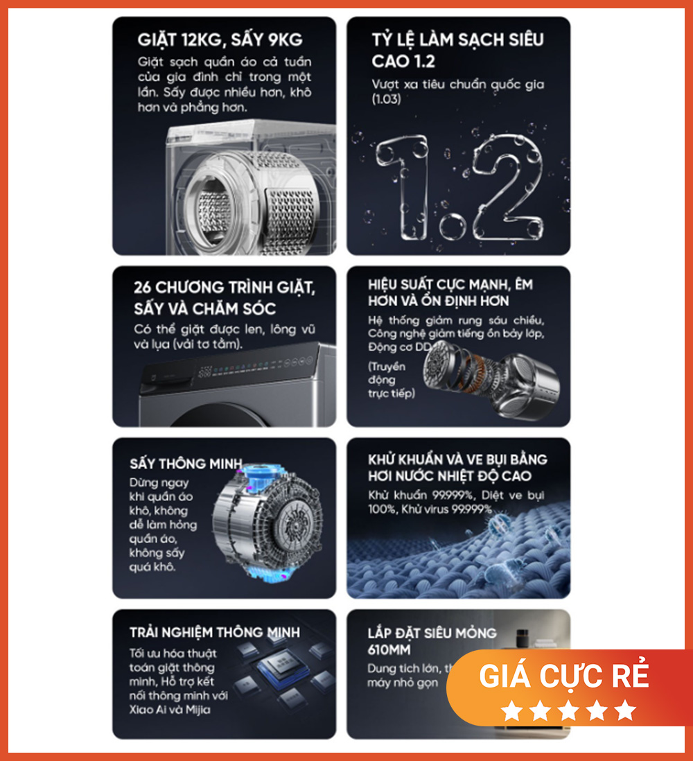 Máy Giặt Sấy Xiaomi Mijia MJ101 2026 Giặt 12kg, sấy 9kg – 2026