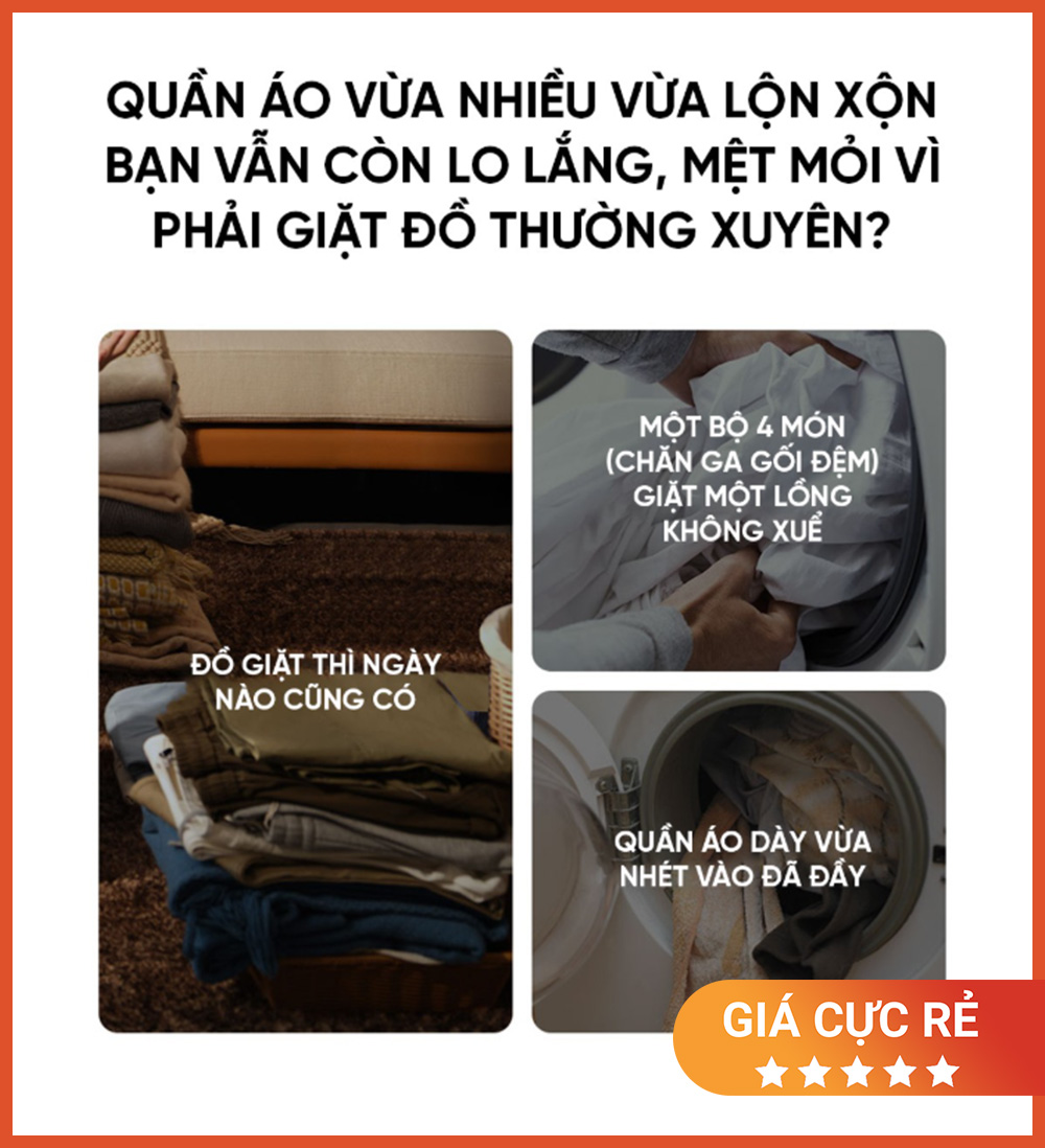 Bạn có thể giặt – sấy ban đêm và mặc ngay sáng hôm sau, đặc biệt tiện lợi với người đi làm, gia đình bận rộn hoặc không gian sống không có chỗ phơi đồ.
