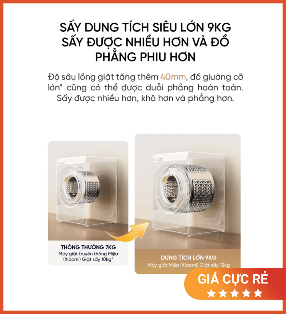 Sấy được tới 9kg, khô đều – mặc ngay không cần phơi